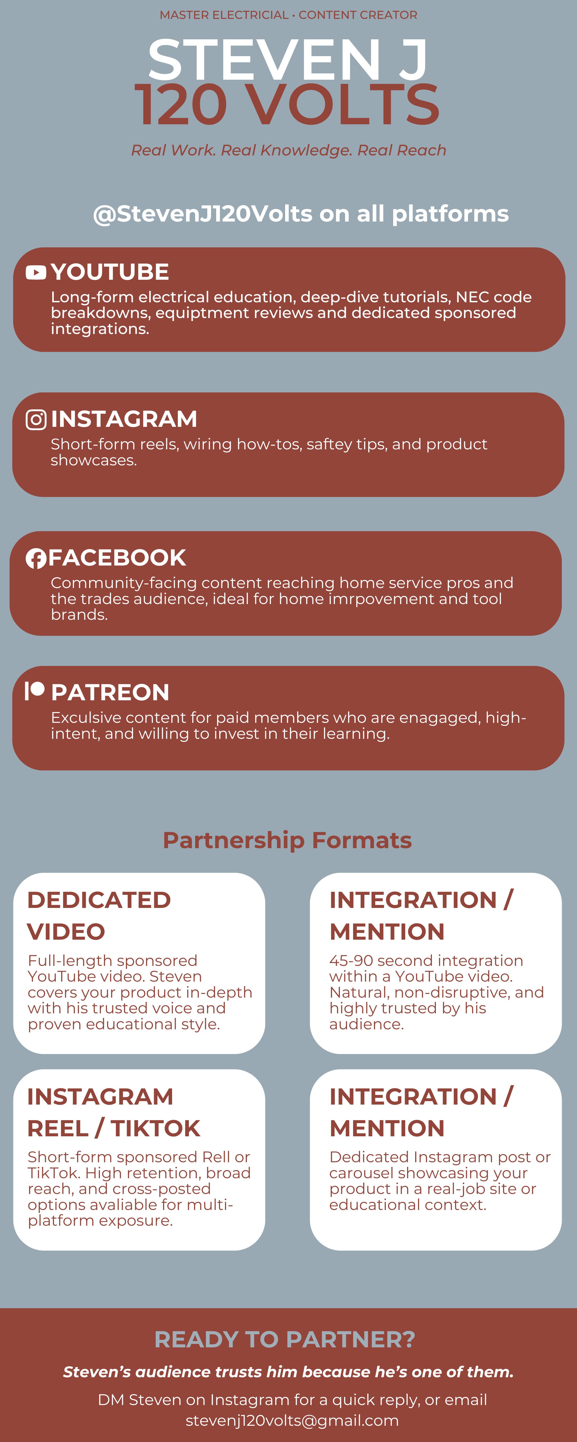 By providing your phone number, you consent to receive calls and text messages (SMS) from Steven J 120 Volts, including calls and messages made using AI-powered technology. You can unsubscribe at any time by replying STOP. Message and data rates may apply. Message frequency varies. See our Privacy Policy for more details.